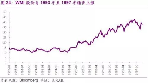 進(jìn)入90年代,公司不滿足于現(xiàn)有的業(yè)務(wù)模式,意圖通過繼續(xù)的并購開拓多元化市場。然而結(jié)果卻超出了公司的預(yù)想。公司于1993年更名為WMX Technologies,意在體現(xiàn)公司多元化的業(yè)務(wù)范圍。通過收購,公司先后進(jìn)入危廢、石棉移除、金屬腐蝕處理、甚至是草坪養(yǎng)護(hù)市場。與之前的垃圾焚燒和垃圾回收不同的是,上述行業(yè)在初期均需要大量資金投入,回報(bào)卻極其有限。公司的多領(lǐng)域擴(kuò)張?jiān)谝婚_始收到了回報(bào),股價(jià)從1993年初的8.87美元一路上揚(yáng)至1997年初的18.86美元,漲幅達(dá)112%。