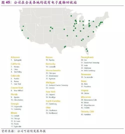 在電子廢物回收業(yè)務(wù)加速發(fā)展的同時(shí),其他危廢處理也是公司關(guān)注的重點(diǎn)。公司的“At Your Door Special CollectionSM”正是專門為居民用戶處理危廢而推出的一站式服務(wù)。包括車用產(chǎn)品、電池、園林化學(xué)物質(zhì)、特別是熒光燈等危廢均可通過公司專用的危廢收集車上門收取。公司的固廢收集車(包括危廢)也是公司的一大亮點(diǎn),截止2016年,已有多達(dá)18500輛使用天然氣驅(qū)動,在為環(huán)保服務(wù)的同時(shí)也真正做到了自我環(huán)保價(jià)值的體現(xiàn)。