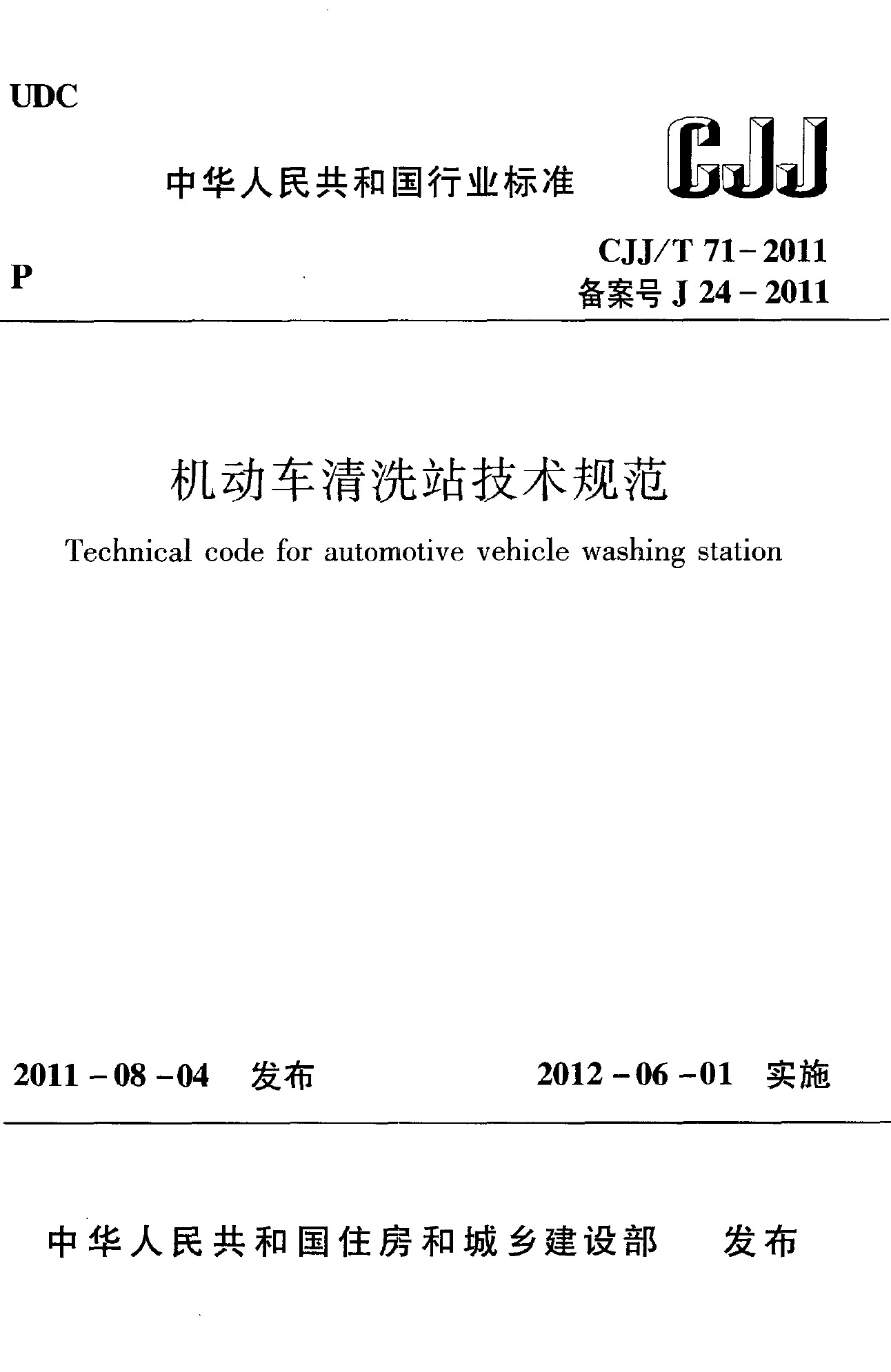 機(jī)動車清洗站技術(shù)規(guī)范(CJJ/T 71-2011)