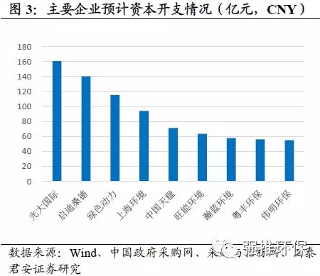 我們測算這9家公司項(xiàng)目全部落地需要超過800億資本開支。根據(jù)各公司在手項(xiàng)目平均噸投資及在手未投運(yùn)產(chǎn)能測算出各公司的預(yù)計(jì)資本開支情況。其中光大國際、啟迪桑德、綠色動(dòng)力、上海環(huán)境若目前在手所有項(xiàng)目都落地,預(yù)計(jì)資本開支都將大于100億元;而中國天楹、旺能環(huán)境、瀚藍(lán)環(huán)境、粵豐環(huán)保、偉明環(huán)保預(yù)計(jì)資本開支約在50-70億元之間。