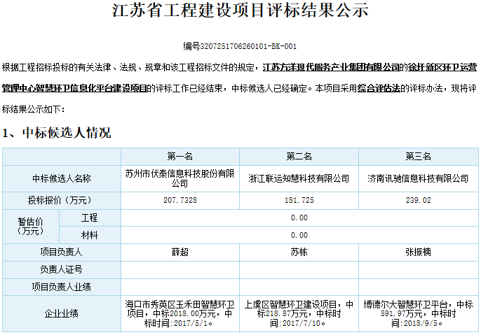 原標(biāo)題:伏泰科技中標(biāo)208萬(wàn)江蘇徐圩新區(qū)智慧環(huán)衛(wèi)信息化平臺(tái)建設(shè)項(xiàng)目