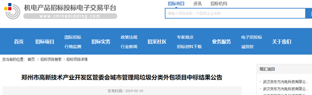 鄭州市高新技術(shù)產(chǎn)業(yè)開發(fā)區(qū)管委會城市管理局垃圾分類外包項(xiàng)目發(fā)布中標(biāo)結(jié)果公告,浙江聯(lián)運(yùn)環(huán)境工程股份有限公司獲得第四標(biāo)段。