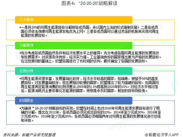 歐盟是最早制定可再生能源量化目標的經(jīng)濟體,歐盟的“20-20-20”戰(zhàn)略提出到2020年溫室氣體排放量將在1990年基礎(chǔ)上減少20%;可再生能源占總能源消費的比例將在2008年8.2%的基礎(chǔ)上提高到20%,其中生物液體燃料在交通能源消費中的比例達到10%;能源利用效率將提高20%,即能源消費量在2006年基礎(chǔ)上減少13%。為了保障“20-20-20”戰(zhàn)略目標的實現(xiàn),歐盟及各成員均啟動了相應(yīng)的立法,并制定了相應(yīng)的行動計劃。