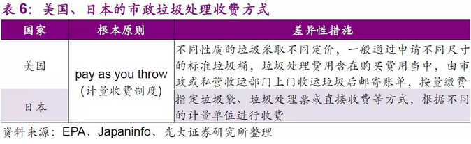 但是隨著垃圾分類和垃圾清運(yùn)市場化進(jìn)程的逐步完善,我們認(rèn)為未來中國有可能參照以上發(fā)達(dá)國家的收費(fèi)模式。在2017年12月20日住建部發(fā)《關(guān)于加快推進(jìn)部分重點(diǎn)城市生活垃圾分類工作的通知》(以下簡稱“通知”)中,明確提出要“完善生活垃圾收費(fèi)政策,逐步建立差別化的收費(fèi)制度,實(shí)現(xiàn)按量收費(fèi)?!睆V州市作為第一個“吃螃蟹”的中國內(nèi)地城市,《廣州市生活垃圾分類管理?xiàng)l例(草案)》已提請市人大審議,其中首次提出了按照“多產(chǎn)生多收費(fèi)”等多項(xiàng)原則進(jìn)行收費(fèi)。2018年7月2日,發(fā)改委發(fā)布《關(guān)于創(chuàng)新和完善促進(jìn)綠色發(fā)展價格機(jī)制的意見》,提出到2020年底前,全國城市及建制鎮(zhèn)全面建立生活垃圾處理收費(fèi)制度,標(biāo)志著垃圾分類即將進(jìn)入收費(fèi)時代。