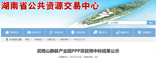 湖南省武陵山靜脈產(chǎn)業(yè)園PPP項目發(fā)布預中標結(jié)果公示,北京首創(chuàng)環(huán)境投資股份有限公司(牽頭單位)/浙江省二建建設集團有限公司/中國輕工業(yè)廣州工程有限公司組成的聯(lián)合體成為預中標社會資本。
