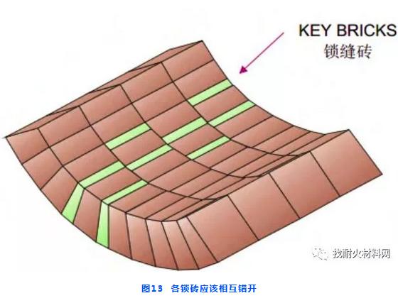 在不考慮其他條件下,高質(zhì)量砌筑能夠延長(zhǎng)耐火磚的使用壽命并且消除部分機(jī)械應(yīng)力和熱應(yīng)力對(duì)耐火磚的損害。相反,低質(zhì)量砌筑會(huì)大大減短耐火磚的壽命。