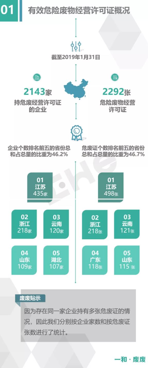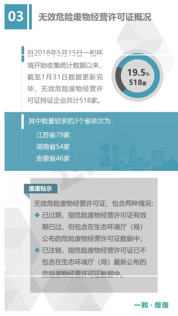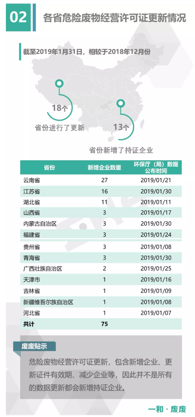 2019年1月全國危險廢物經(jīng)營許可證統(tǒng)計概況