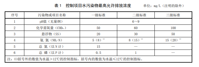在水污染物排放控制要求方面,根據(jù)農(nóng)村生活污水處理設(shè)施處理規(guī)模、出水排入地表水環(huán)境功能敏感程度等,將農(nóng)村生活污水處理設(shè)施水污染物排放標準分為一級標準、二級標準和三級標準。規(guī)模大于2m³/d(含)的新建農(nóng)村生活污水處理設(shè)施,水污染物排放限值按下表 對應(yīng)的規(guī)定執(zhí)行。