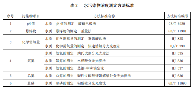 在水污染物監(jiān)測方面,水質(zhì)取樣在污水處理廠處理工藝末端排放口。按照《排污口規(guī)范化整治技術(shù)要求(試行)》的有關(guān) 要求,在污染物排放監(jiān)控位置須設(shè)置永久性排污口標志。對排放水污染物濃度的測定采用下表所列的方法標準。