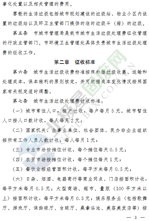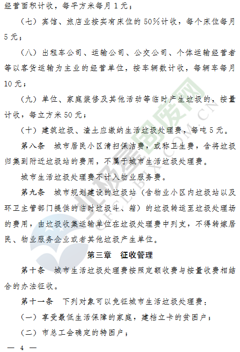 (九)單位、家庭裝修及其他活動等臨時產(chǎn)生垃圾的,按量計(jì)收,每立方米50元;
