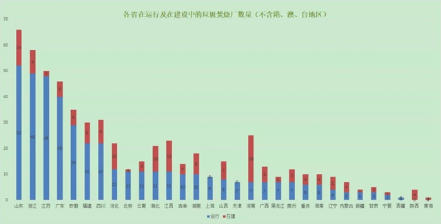 那我們先來看一下目前全國的垃圾焚燒廠在各省、直轄市分布情況:
