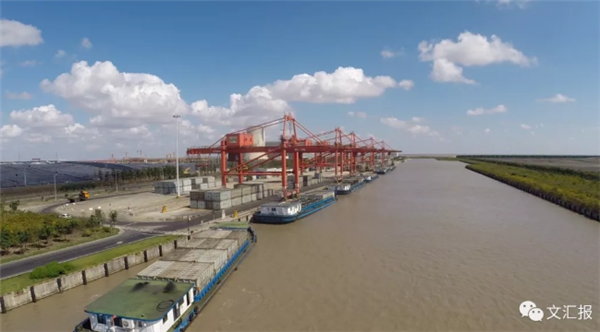 細(xì)雨蒙蒙,車駛?cè)肷虾@细凵鷳B(tài)環(huán)保基地。兩側(cè)樹木成林,草坪成片。生態(tài)苑里,“烏篷聽雨”“蘆花鷺影”景致別樣,儼然一座郊野公園。不遠(yuǎn)處,白色的風(fēng)力發(fā)電機(jī),在高空中緩緩轉(zhuǎn)動(dòng)3支葉片。不時(shí)有運(yùn)輸集卡從身邊駛過。