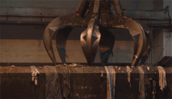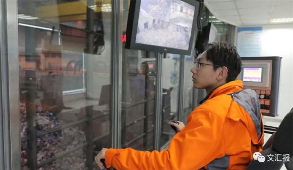 很快,就到了老港再生能源中心。每天有超過3000噸生活垃圾在這里的焚燒廠分解、發(fā)電,變廢為寶。在垃圾待焚燒庫區(qū), 6個(gè)爪子的機(jī)器抓手,像抓娃娃機(jī)一樣,強(qiáng)有力地一把抓起垃圾,靈活地送入焚燒口。這個(gè)巨大的抓手,一次可以抓送8噸垃圾。