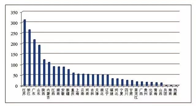 2017年各省區(qū)市危險廢物持證單位實際收集和利用處置量。資料來源:生態(tài)環(huán)境部