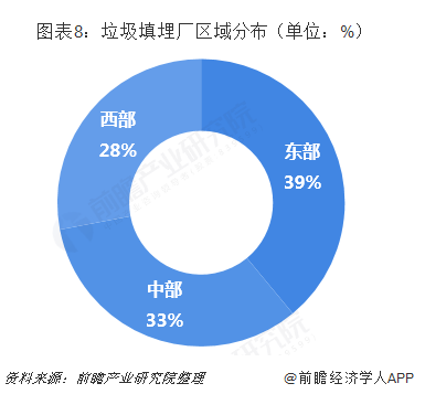 在垃圾無(wú)害化處理方面,我國(guó)各地區(qū)填埋處理占生活垃圾無(wú)害化比例保持著東低中西高的趨勢(shì),東部、中部和西部地區(qū)的生活垃圾填埋處理占無(wú)害化比例分別為52.1%、71.4%和71.2%。