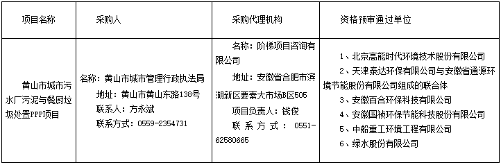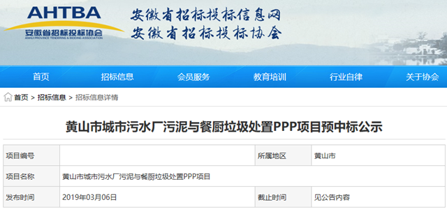 黃山市城市污水廠污泥與餐廚垃圾處置PPP項(xiàng)目發(fā)布預(yù)中標(biāo)公示,天津泰達(dá)環(huán)保有限公司與安徽省通源環(huán)境節(jié)能股份有限公司組成的聯(lián)合體成為預(yù)中標(biāo)社會資本方。