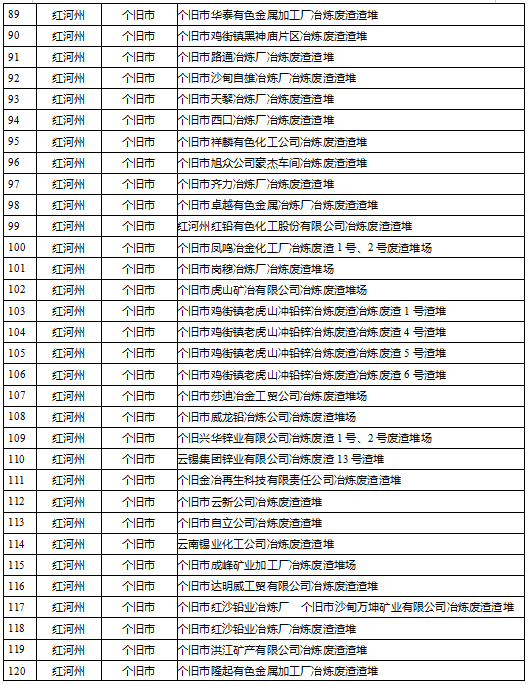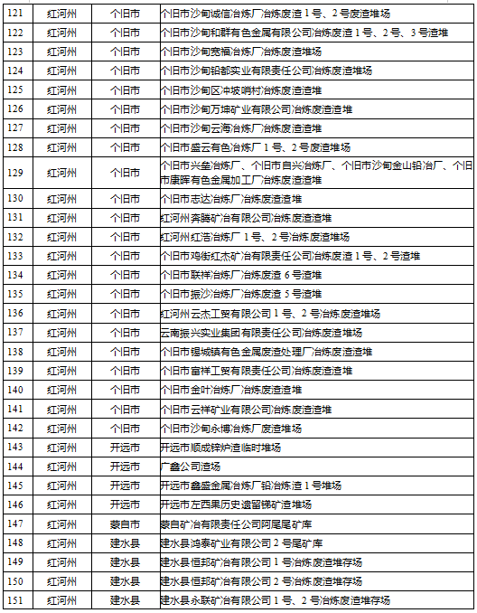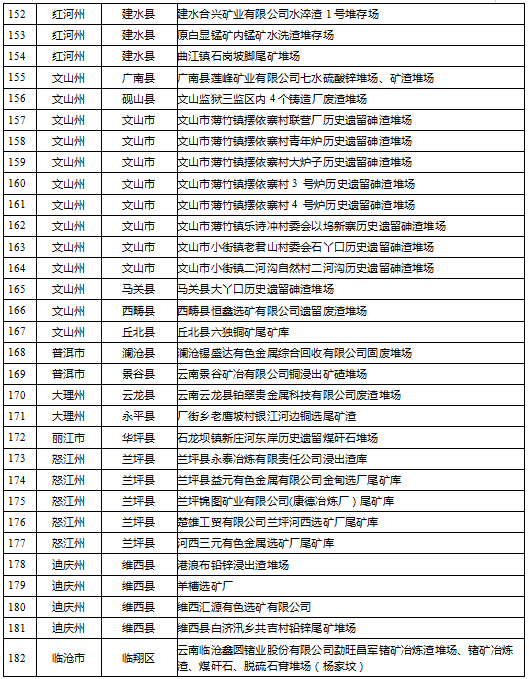 云南省工業(yè)固體廢物堆存場(chǎng)所環(huán)境整治清單(185個(gè))