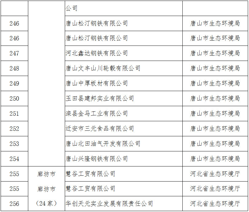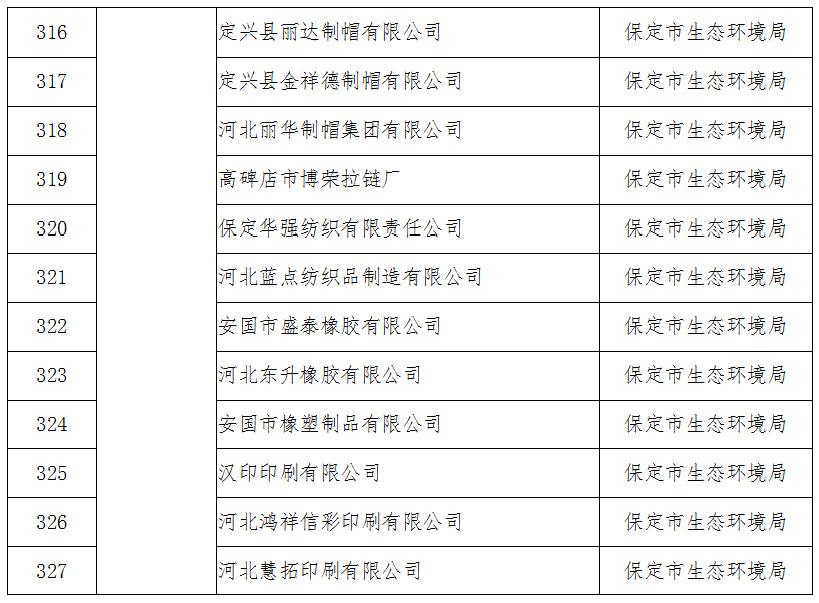 河北省2019年度開展強制性清潔生產(chǎn)審核企業(yè)名單