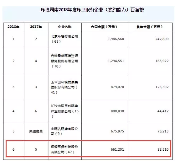在這幾千家企業(yè)中,僑銀環(huán)保憑借較強(qiáng)實(shí)力,在2016年度新簽合同金額中位列全國(guó)十強(qiáng),在2017和2018年分別位列第五和第六名。