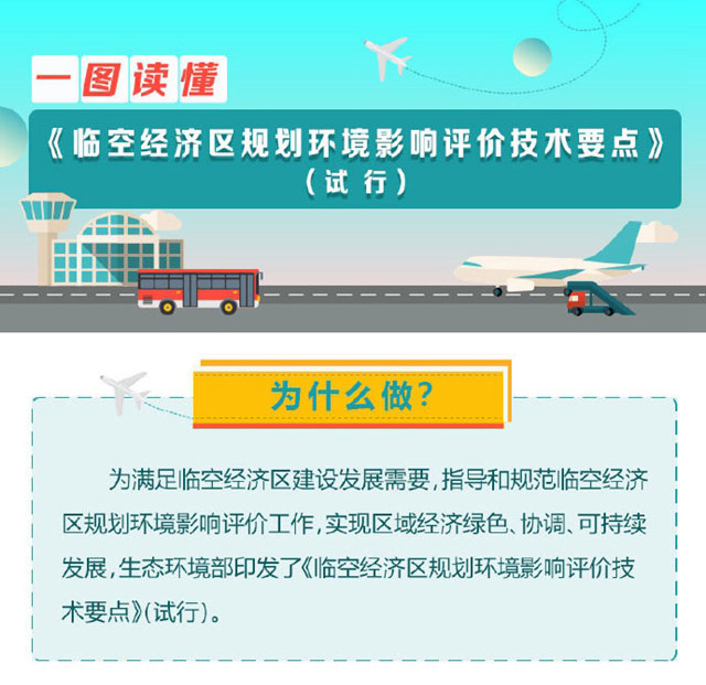 為滿足臨空經(jīng)濟區(qū)建設(shè)發(fā)展需要,指導和規(guī)范臨空經(jīng)濟區(qū)規(guī)劃環(huán)境影響評價工作,實現(xiàn)區(qū)域經(jīng)濟綠色、協(xié)調(diào)、可持續(xù)發(fā)展,近日,生態(tài)環(huán)境部印發(fā)了《臨空經(jīng)濟區(qū)規(guī)劃環(huán)境影響評價技術(shù)要點》(試行)。臨空經(jīng)濟區(qū)規(guī)劃環(huán)境影響評價為什么做?誰來做?重點做什么?怎么做?