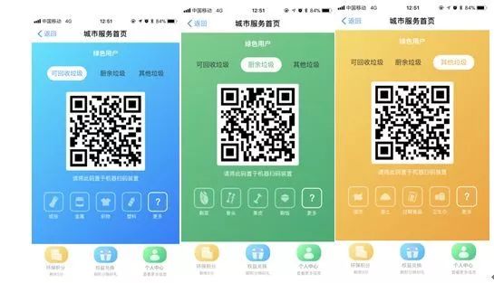 進(jìn)入并注冊后每個用戶將獲得三個垃圾分類投遞二維碼,在分類回收的垃圾箱上掃一掃,將 垃圾投遞到相應(yīng)的垃圾箱內(nèi)即可。