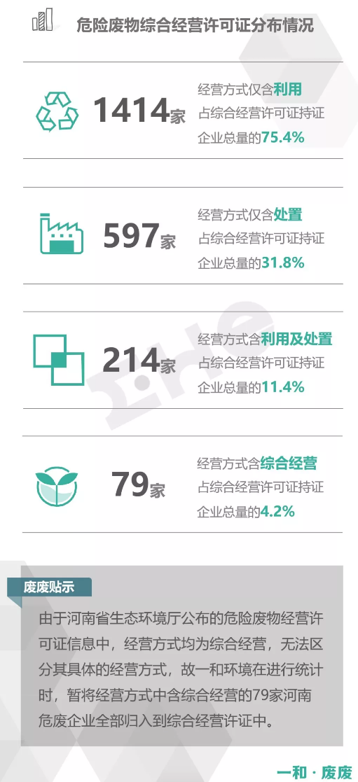 2.統(tǒng)計范圍:本次數(shù)據(jù)收集統(tǒng)計的范圍為省級生態(tài)環(huán)境廳(局)官方公布的持有危險廢物經(jīng)營許可證企業(yè)的數(shù)據(jù),因此由地級市發(fā)布的醫(yī)療廢物經(jīng)營許可證、收集經(jīng)營許可證,且未納入省級生態(tài)環(huán)境廳(局)公布數(shù)據(jù)的部分,并未計入統(tǒng)計數(shù)據(jù)中。