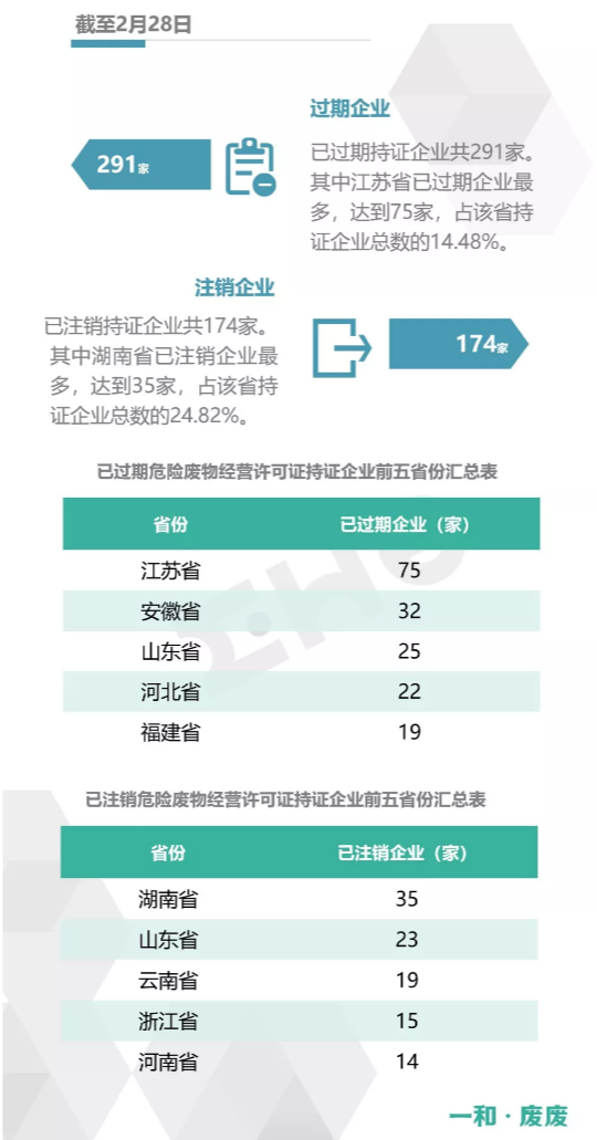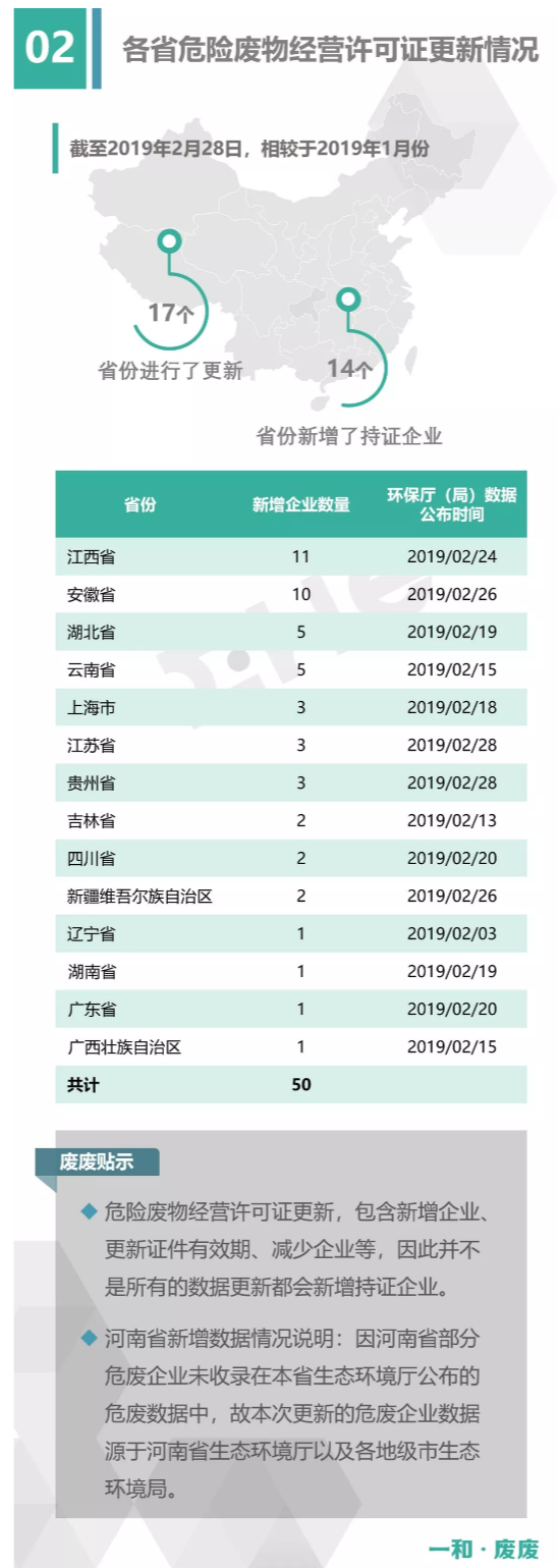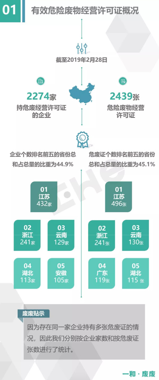 2019年2月全國危險廢物經(jīng)營許可證統(tǒng)計概況
