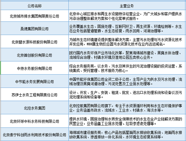 考慮到北京市治水力度,京津冀聯(lián)合治理污染的需求,以及更長遠的水生態(tài)綜合治理和防護預期,本土涉足水務的環(huán)保企業(yè)占據(jù)了不少的天時地利。篩選部分北京涉水環(huán)保企業(yè),以供參考。