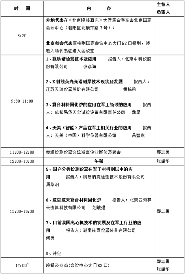 (參加人員:軍工企業(yè)代表、試驗(yàn)與檢測儀器論壇發(fā)言企業(yè)代表)