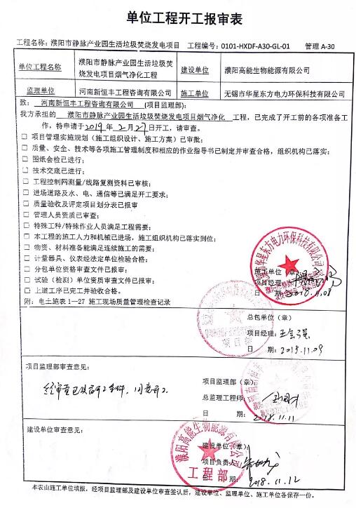 河南濮陽生活垃圾焚燒發(fā)電煙氣凈化工程開工建設(shè)