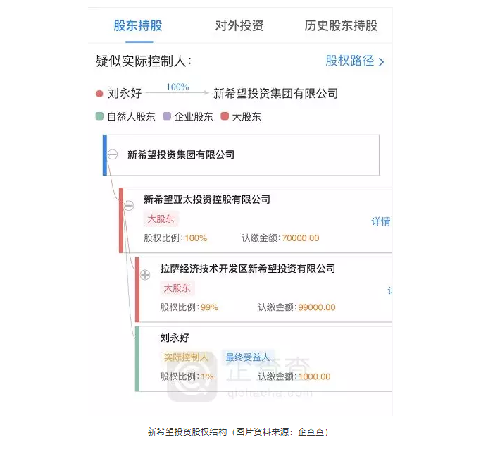 據(jù)悉,新希望投資是新希望集團旗下的投資平臺,由新希望亞太投資控股有限公司控股,注冊地址位于拉薩經(jīng)濟開發(fā)區(qū)。經(jīng)營范圍包括:創(chuàng)業(yè)投資(不得從事?lián):头康禺a(chǎn)業(yè)務;不得參與發(fā)起或管理公募或私募證券投資基金、投資金融衍生品);股權投資(不含公募基金。不得從事證券、期貨類投資;不得參與發(fā)起或管理公募或私募證券投資基金、投資金融衍生品;不得從事房地產(chǎn)和擔保業(yè)務);投資管理(不含金融和經(jīng)紀業(yè)務。不得從事證券、期貨類投資;不得向非合格投資者募集、銷售、轉(zhuǎn)讓私募產(chǎn)品或者私募產(chǎn)品收益權);資產(chǎn)管理(不含金融資產(chǎn)管理和保險資產(chǎn)管理)等。