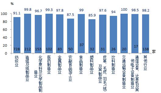 各設(shè)區(qū)市中,紹興、衢州和舟山達(dá)標(biāo)率有所上升,升幅為0.3-21.7個(gè)百分點(diǎn),其余各市下降0.2-5.0個(gè)百分點(diǎn)。主要行業(yè)中,交通運(yùn)輸設(shè)備制作業(yè)達(dá)標(biāo)率持平,紡織業(yè)、醫(yī)藥制造業(yè)和金屬制品業(yè)有所上升,升幅為2.0-9.8個(gè)百分點(diǎn),其余行業(yè)下降0.1-14.1個(gè)百分點(diǎn)。