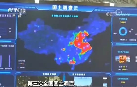 央視記者 徐揚(yáng):這里是全國(guó)國(guó)土調(diào)查一個(gè)網(wǎng)絡(luò)指揮中心,從這里可以實(shí)時(shí)監(jiān)測(cè)正在進(jìn)行的國(guó)土調(diào)查的進(jìn)展?fàn)顩r,圖上的紅色區(qū)域是目前實(shí)地野外調(diào)查比較集中的區(qū)域,上面的數(shù)字就是實(shí)時(shí)在線的工作人員數(shù)量。