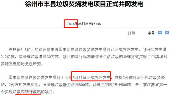 該項(xiàng)目因存在環(huán)境違法行為已于2018年4月關(guān)停,國豐新能源江蘇有限公司,被收回特許經(jīng)營權(quán),不再生產(chǎn)。
