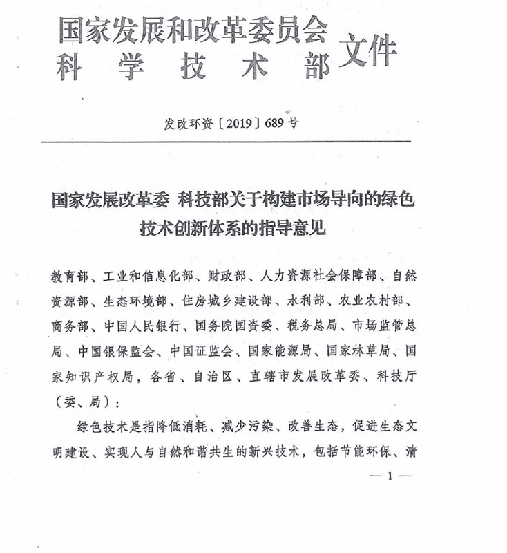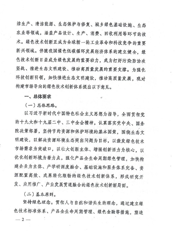 關(guān)于構(gòu)建市場導(dǎo)向的綠色技術(shù)創(chuàng)新體系的指導(dǎo)意見