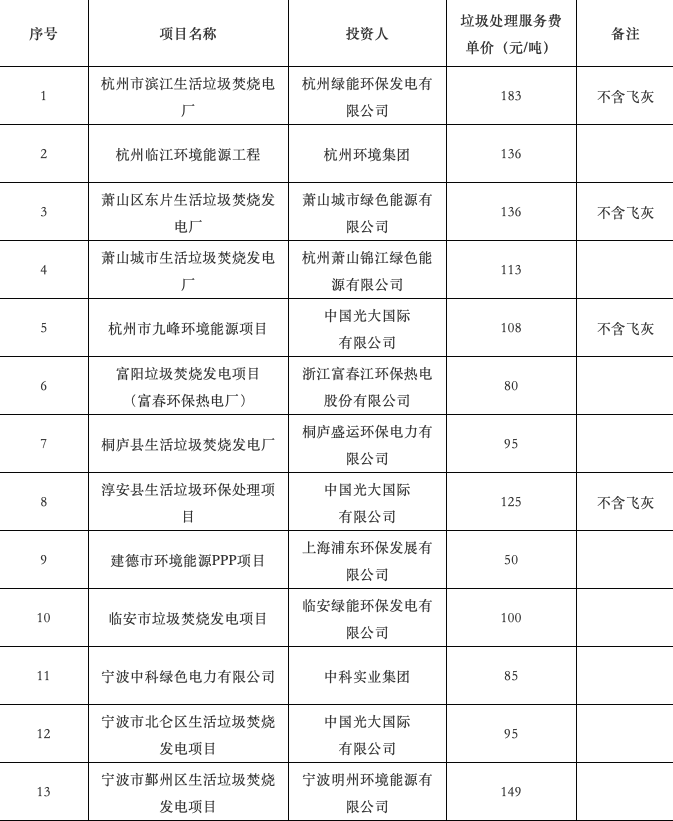 大邦咨詢對浙江省所有垃圾焚燒發(fā)電項目情況進行了統(tǒng)計整理,現(xiàn)將浙江省所有垃圾焚燒發(fā)電項目的垃圾處理服務費單價予以公布,供政府方、社會資本方及咨詢機構等相關方參考。