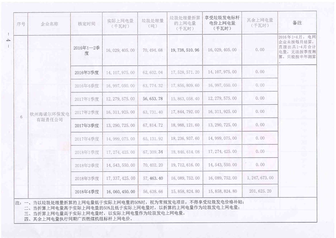 附件:廣西各垃圾焚燒發(fā)電企業(yè)上網(wǎng)電量核定表
