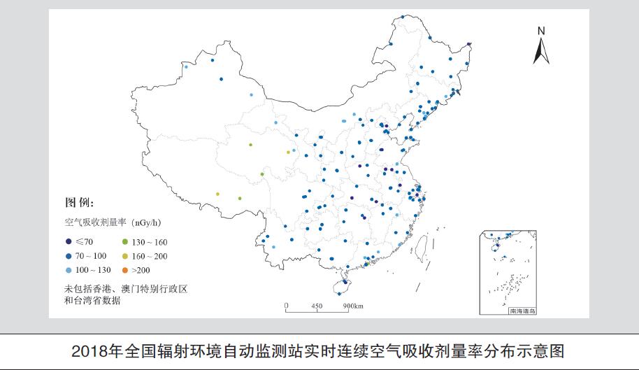 2018年全國近岸海域海水中鍶-90和銫-137活度濃度分布示意圖