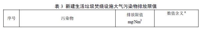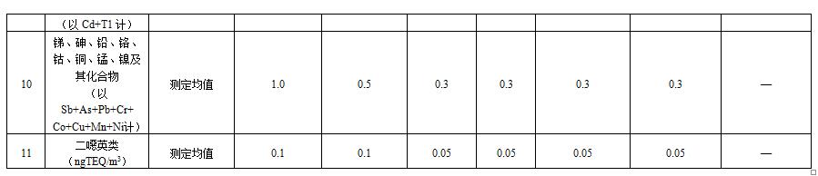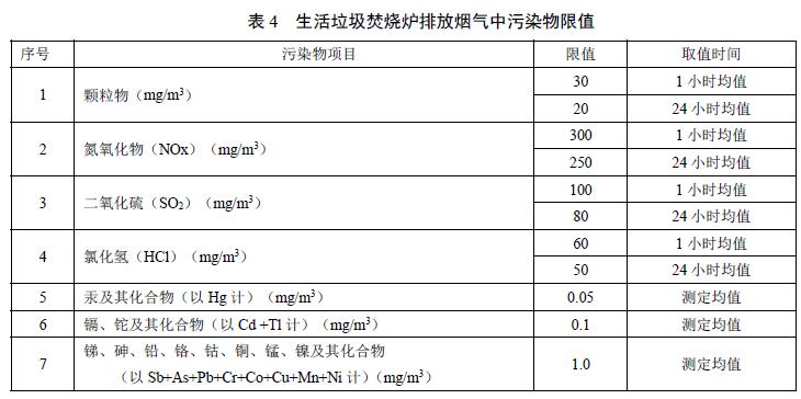 我國垃圾焚燒大氣污染物排放相關標準限值比較