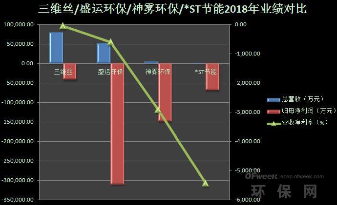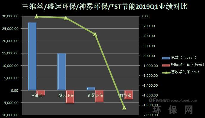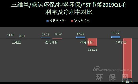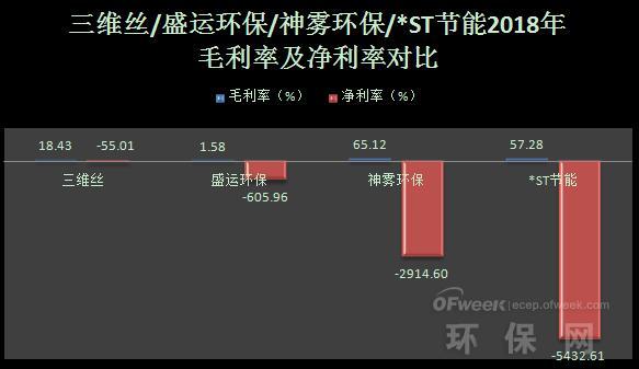 從以上上圖可以看出,雖然三維絲、盛運(yùn)環(huán)??偁I(yíng)收比較可觀,但四家公司2019年一季度及2018年歸母凈利潤(rùn)都處于虧損狀態(tài),營(yíng)收凈利率也下滑,其中,*ST節(jié)能虧損得最為嚴(yán)重,2018年?duì)I收凈利率下降5432.63%。
