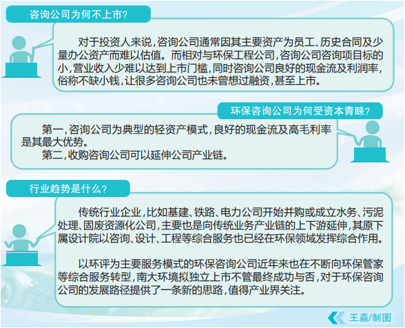 無論是獨(dú)立上市,還是并購(gòu)上市,環(huán)保咨詢公司開始受到資本市場(chǎng)的青睞。分析認(rèn)為,主要原因有以下兩點(diǎn):