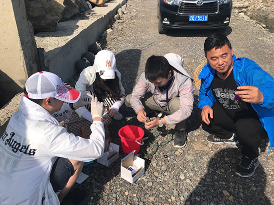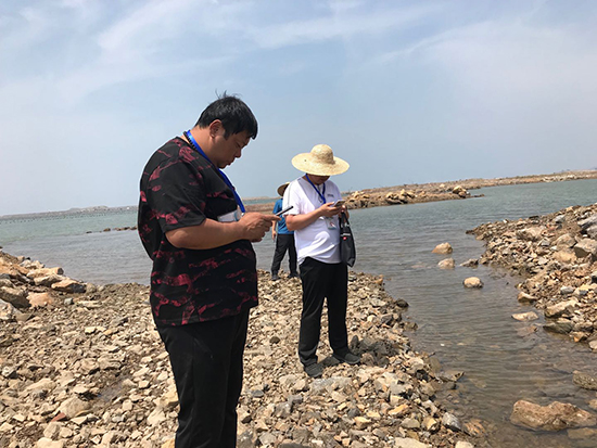 生態(tài)環(huán)境部派出的排查人員在大連市金普新區(qū)排查現(xiàn)場。郄建榮 攝