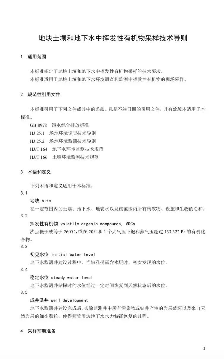 為貫徹《中華人民共和國環(huán)境保護法》《中華人民共和國水污染防治法》和《中華人民共和國土壤污染防治法》,保護生態(tài)環(huán)境,保障人體健康,加強地塊環(huán)境保護監(jiān)督管理,規(guī)范地塊土壤和地下水中揮發(fā)性有機物采樣技術(shù),制定本標準。