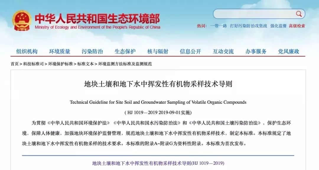 近日,生態(tài)環(huán)境部為貫徹《中華人民共和國環(huán)境保護法》《中華人民共和國水污染防治法》和《中華人民共和國土壤污染防治法》,保護生態(tài)環(huán)境,保障人體健康,加強地塊環(huán)境保護監(jiān)督管理,規(guī)范地塊土壤和地下水中揮發(fā)性有機物采樣技術(shù),出臺了《地塊土壤和地下水中揮發(fā)性有機物采樣技術(shù)導則》。