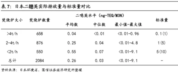 日本政府后來采取的措施,是規(guī)定焚燒廠必須維持在 850-1100 攝氏度內分解廢 棄物,焚燒爐內煙氣在焚燒爐內停留超過 2 秒鐘,并持續(xù)噴射活性炭等吸附劑, 然后使用布袋除塵器來捕集細微顆粒,從而最大限度減少二噁英的生成與排放。 日本法律規(guī)定的排放標準中,根據(jù)焚燒爐規(guī)模大小設置不同的標準量。總體來 看,最高不得超過 0.1ng-TEQ/M3N,高標準高要求使得日本的二噁英排放量急 劇下降,到 2011 年時,日本的垃圾焚燒廠排放二噁英毒性當量總量僅為 59 克, 其中生活垃圾焚燒廠排放 32 克,工業(yè)廢物焚燒廠排放 27 克,較 1997 年降低 了 99%。目前,日本垃圾焚燒廠排放物已經(jīng)接近空氣,二噁英的含量趨近于 0。