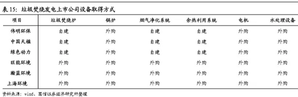 成本端:主要為攤銷、人工成本、運營支出等。由于垃圾焚燒項目初期投資大、 資產(chǎn)重,大量 BOT 業(yè)務在工程完工后將特許經(jīng)營權確認為無形資產(chǎn),無形資產(chǎn) 攤銷在垃圾焚燒發(fā)電項目的成本中占比較大。除去攤銷成本外,其它成本主要 為職工薪酬、生產(chǎn)服務及勞務費等人工成本,以及石灰、活性炭等生產(chǎn)材料和 日常維修、后端滲濾液、飛灰處置等運營支出。由于特許經(jīng)營權形成的無形資 產(chǎn)的攤銷費用占營業(yè)成本的比重最大,而自建設備相較于外購設備成本更低, 因此具備垃圾焚燒設備生產(chǎn)能力的企業(yè)將更具優(yōu)勢。