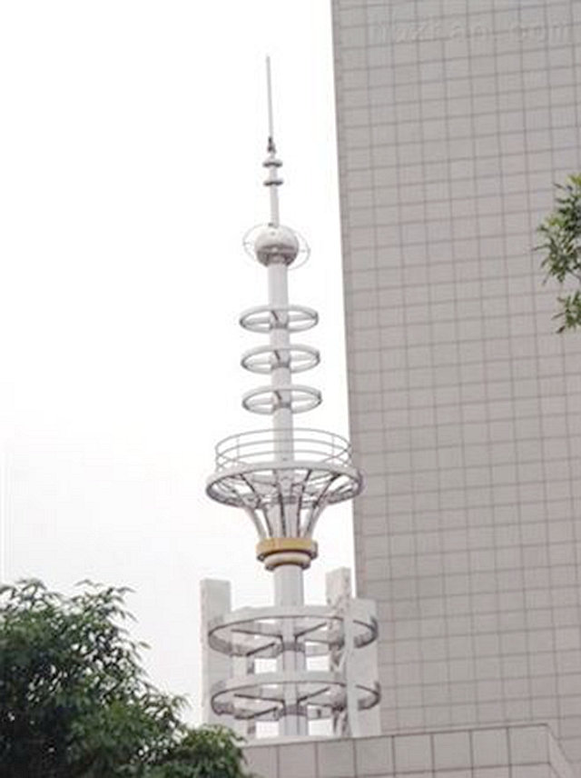 與現(xiàn)代化建筑遙相呼應(yīng),集通訊、避雷、防空、觀光、裝飾等功能為一體,美觀大方。塔體外部包有不銹鋼板或鈦金板,塔體上安裝各種不銹鋼環(huán),塔上放置避雷設(shè)施、通信天線等。塔體鋼構(gòu)件作熱鍍鋅防腐處理,耐腐蝕性能好。