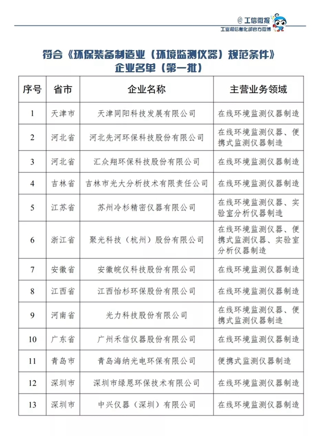 2.符合《環(huán)保裝備制造行業(yè)(環(huán)境監(jiān)測儀器)規(guī)范條件》企業(yè)名單(第一批)