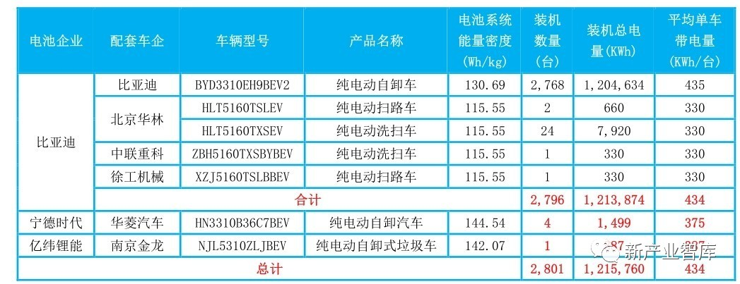 2019H1新能源重型專(zhuān)用車(chē)裝機(jī)量配套情況