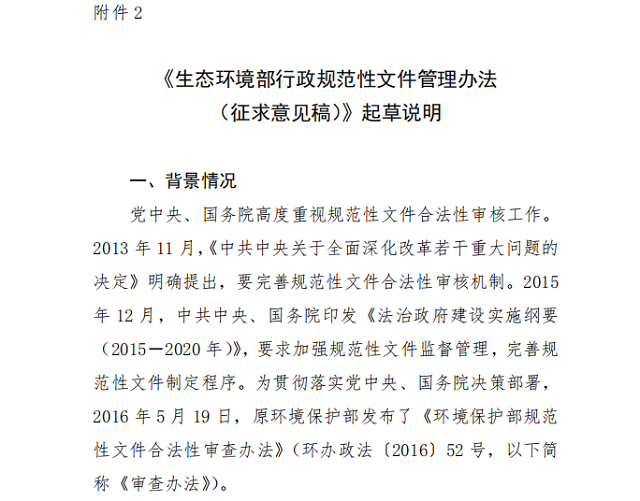 2.《生態(tài)環(huán)境部行政規(guī)范性文件管理辦法(征求意見稿)》起草說明